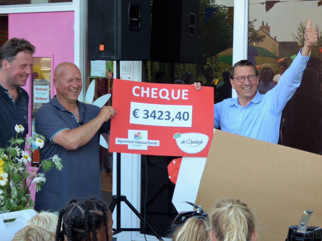 Gistermiddag was het zover. Onder warme omstandigheden werd de sponsorloop van OBS de Opslach afgewerkt. Leerlingen en ouders werkten zich flink in het zweet voor Agrarisch Natuurfonds Fryslân en dan met name voor Murk Nijdam. Kinderen had van te voren in hun eigen kring sponsors gevonden die hun inspanning beloonden. Aan het einde werd op opbrengst door wethouder Maarten Offinga van de gemeente Súdwest Fryslân bekend gemaakt. De kinderen en hun ouders liepen maar liefst € 3.423,40 bij elkaar. Vogelwacht Wommels deed ook nog een duit in het zakje. Zij doneren maar liefst € 500,= voor het project Murk Nijdam. Allemaal bedoeld om het project bij Murk Nijdam mogelijk te maken. Proficiat aan iedereen die heeft meegedaan! Misschien is Murk Nijdam ook voor andere scholen of instellingen een prachtig doel om zich voor in te zetten(https://agrarischnatuurfondsfryslan.nl/project-murk-nijdam/) ?